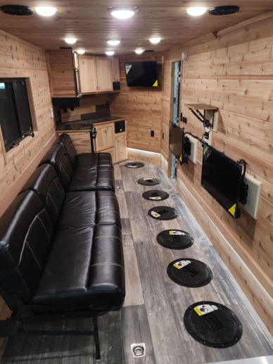We have built in livescopes connected to the tvs. Clam shacks if needed as well. For rods we like the ST. Croix legend gold series as their spring bobbers are hard to beat on light bites for jumbo perch. Food and drinks are not included. Bait, tackle and portable shacks are provided. All the holes are drilled for you. Cleaning of the fish is included as well. These shacks are designed to be moved fast! they will be moved alot to say on the fish.